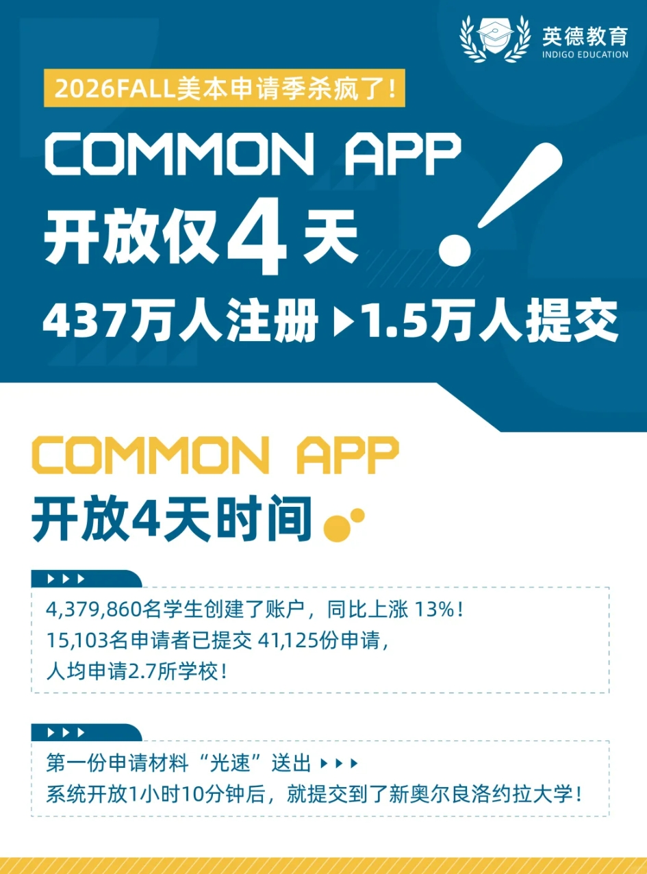 2026Fall美本申请热潮!Common App开放4天437万人注册,竞争提前白热化