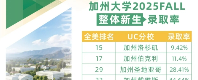2025 年,加州大学(University of California,简称 UC 系统)发布了最新的 2025 Fall 录取数据,向全球申请者传递出一个重要信号——扩招正在全面推进,尤其是国际生录取人数同比大幅增长 17%,为本地学生和国际学生带来了前所未有的机会。 [...]